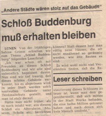 Mit diesem Text habe ich mich damals über das Thema "Abriss von Schloss Buddenburg" beschwert.